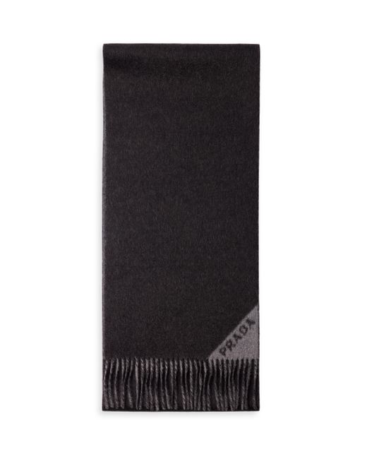 This sleek scarf is made of soft, warm cashmere with a reversible design, animated by contrasting colors. The jacquard logo, repeated on opposite corners of the scarf, adds a distinctive touch to the accessory. Jacquard logo Two-tone double face Fringe on two sides 100% cashmere Made in Italy 11'' W x 70'' H. Lsd Rtw - Prada Rtw > Prada > Saks Fifth Avenue > Barneys. Prada. Color: Dark Grey.