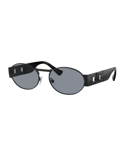 An oval silhouette set on steel frames featuring Versace's archival Medusa motif on the temples. 100% UV protection Solid lenses Steel Made in Italy SIZE 56mm lens width 18mm bridge width 140mm temple length ABOUT THE BRAND Founded in 1978, Versace is instantly recognizable by the signature Medusa head logo, chosen by founder Gianni Versace for its Greek symbolism. The Italian label is known for its luxe, bold clothing, sneakers, shoes and accessories-think gilding, oversized logos and punchy prints. Since taking over artistic direction, Gianni's sister Donatella Versace has maintained the brand's strong identity, with a renewed vision to give customers the ultimate freedom to express themselves. Soft Accessories - Men Sunglasses > Versace > Saks Fifth Avenue > Barneys. Versace. Color: Matte Black Grey.