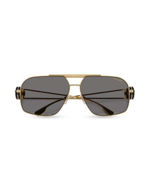 These Versace sunglasses are made with a lightweight metal frame. This pair features a double-bridge design adorned with a subtle logo. 100% UV protection Solid lenses Steel Made in Italy SIZE 62mm lens width 13mm bridge width 130mm temple length. Soft Accessories - Men Sunglasses > Versace > Saks Fifth Avenue > Barneys. Versace. Color: Gold Grey.