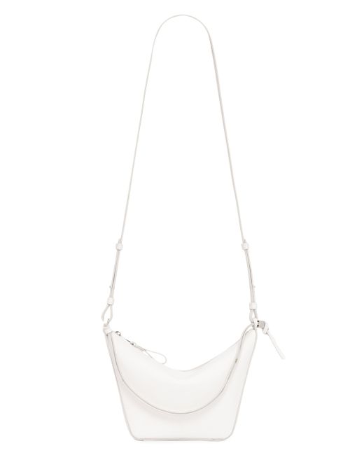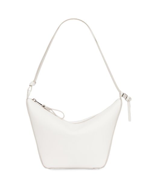 Crafted in Spain of soft calf leather, this sleek LOEWE Mini Hammock hobo bag features a knotted double-strap top handle and is finished with the brand's debossed anagram monogram at the side. Top handle Top zip closure Calf leather Made in Spain SIZE 11"W x 6.75"H x 3.75"D. Handbags - Loewe Handbags > Loewe > Saks Fifth Avenue > Barneys. LOEWE. Color: Soft White.