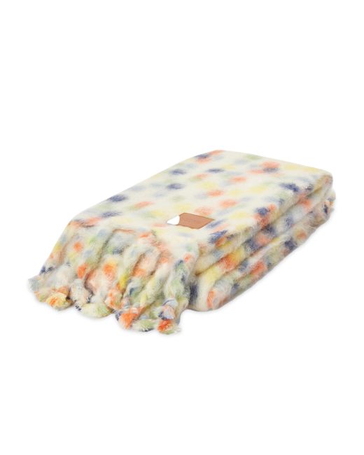 Crafted of a textured mohair-wool blend, this throw blanket from LOEWE is defined by a multicolor dot design. Twisted tassels finish the edges. 69.35% mohair/22.8% wool/5% calf skin/2.85% polyamide Hand wash Made in Spain SIZE About 50.75"W x 72.25"L. Home - Decorative Home > Loewe > Saks Fifth Avenue > Barneys. LOEWE.