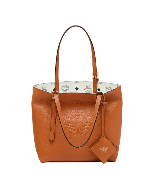 The Himmel Mini Leather Shopper Bag from MCM is a compact yet spacious accessory, crafted of premium cowhide leather. This Italian-made style features an adjustable shoulder strap, an open top, and a Visetos coated canvas lining. Adjustable shoulder strap Interior: one zip pouchette Open top Leather Trim: leather Made in Italy SIZE About 8.19"W x 4.48"D x 8.19"H Adjustable strap: about 6.8" drop ABOUT THE BRAND MCM stands for founder Michael Cromer München's initials, and since 1976, the German luxury label has focused on creating travel pieces-backpacks, luggage and oversized totes-all in its signature Visetos logo-printed coated canvas. In recent years, the brand's offering has expanded to include handbags and shoes. Handbags - Modern Collection Handba > Mcm > Saks Fifth Avenue > Barneys. MCM. Color: Cognac.