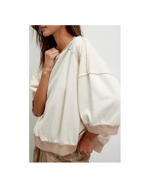 Laidback to the max, this effortless pullover from We The Free is featured in a boxy, ¾ sleeve style in a washed fleece fabrication for the perfect lived-in look. **Fit:** Relaxed, boxy, oversized **Features:** Washed burnout fleece fabrication, crew neckline, drop-shoulder ¾ length sleeves, exposed seams, ribbed trims **Why We ❤ It:** Perfect for year-round styling. We The Free Everything Pullover at Free People in Nilla Cream, Size: XS