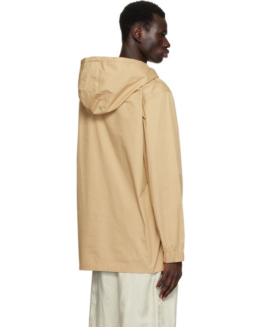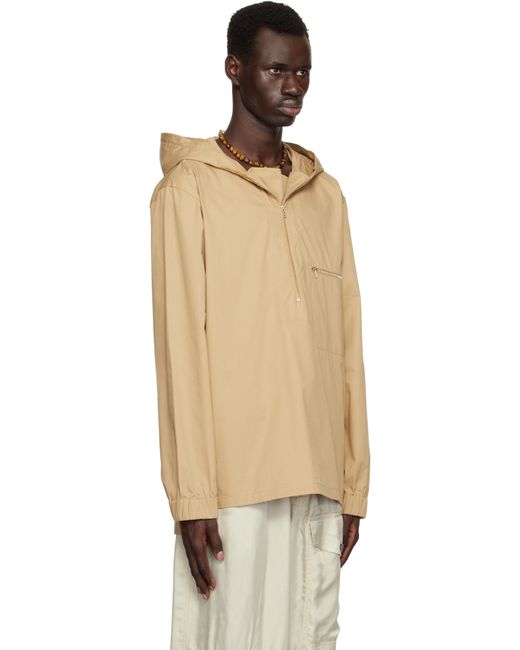 Cotton twill jacket. · Cord-lock drawstring at hood · Stand collar · Half-zip closure · Zip pocket · Vented side seams · Elasticized cuffs Supplier color: Sand