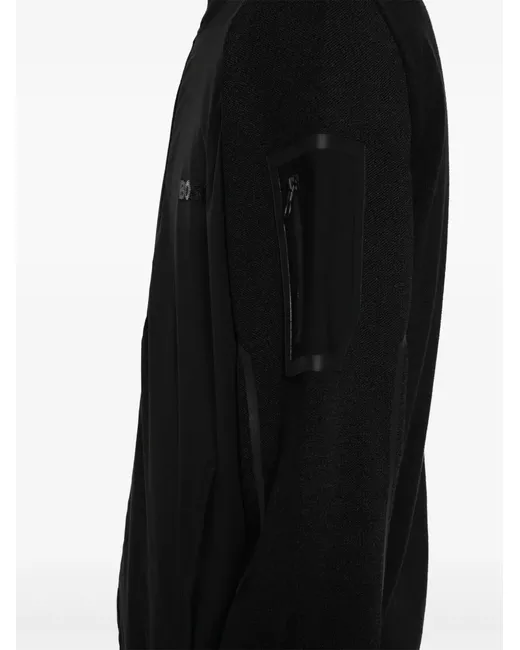 black front zip fastening contrasting-fabric sleeves two side welt pockets high neck