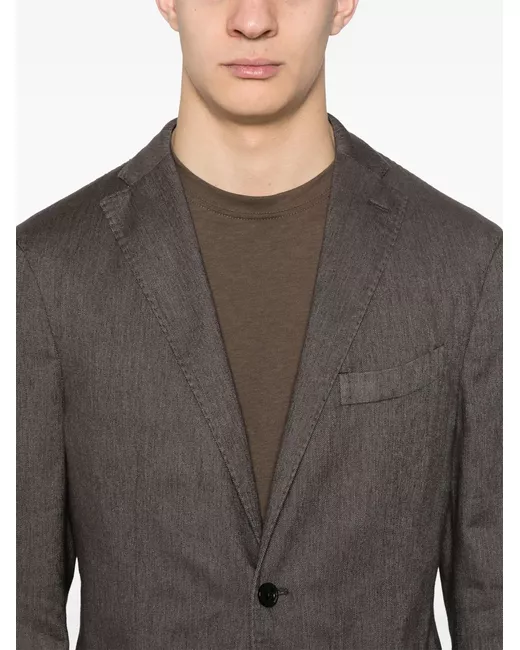 sepia brown front button fastening English rear vents buttoned-cuff sleeves two front patch pockets
