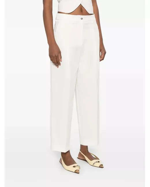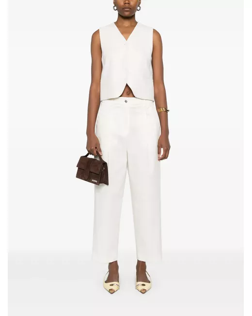 white concealed fly and button fastening two side slash pockets two rear patch pockets belt loops