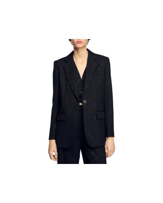 Sandro Sequin Suit Jacket.Color:Black.Size:34 FR/2 US.Material:Main material: 98% viscose/2% polyamide; lining: 100% viscose; under collar: 100% polyester; pocket lining: 100% cotton.