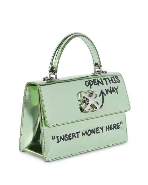 mint green foldover top with magnetic fastening single top handle detachable shoulder strap slogan print