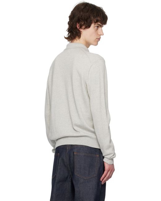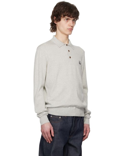 Knit wool polo. · Rib-knit spread collar, hem, and cuffs · Three-button placket · Embroidered logo patch at chest Supplier color: Light grey melange