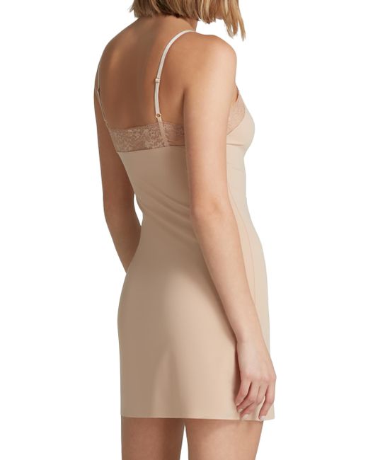 Crafted of stretch nylon, Commando's Double Take slip is styled with adjustable straps, a weighted hem, and lace trim. V-neck Adjustable shoulder straps Pulls over 78% nylon/22% elastane Trim: 81% nylon/19% elastane Machine wash Imported SIZE & FIT Model measurements: 5'10" tall Model is wearing a US size Small. Lingerie - Contemporary Collections > Commando > Saks Fifth Avenue > Barneys. Commando. Color: Beige. Size: XS.