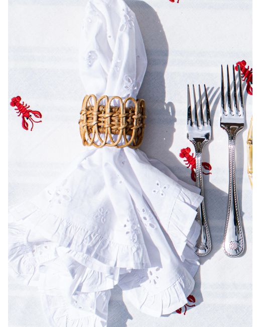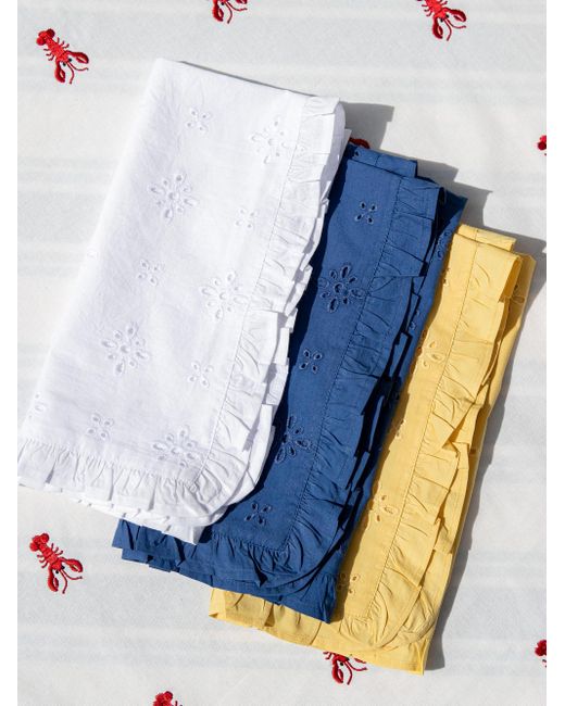 Crafted of cotton, this beautiful napkin by Juliska features an eyelet design with a ruffled border. Cotton Machine wash Imported SIZING 22"W x 22"L. Home - Serveware > Juliska > Saks Fifth Avenue > Barneys. Juliska. Color: White.