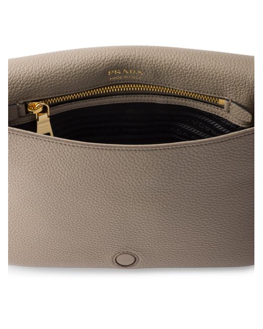 A modern, pragmatic design defines this leather shoulder bag, complete with a removable strap for versatile wear. The metal logo lettering adds a distinctive touch. Adjustable and detachable logo-print woven tape shoulder strap, length 95 cm Back pocket Metal hardware Metal logo lettering on the flap Magnetic flap closure Logo-print nylon lining with zipper pocket 100% Calf Leather Imported 9'' W x 6.1'' H x 3.5'' L. Lsd Handbags - Prada Handbags Access > Prada > Saks Fifth Avenue > Barneys. Prada. Color: Grey.
