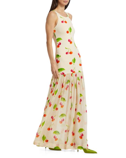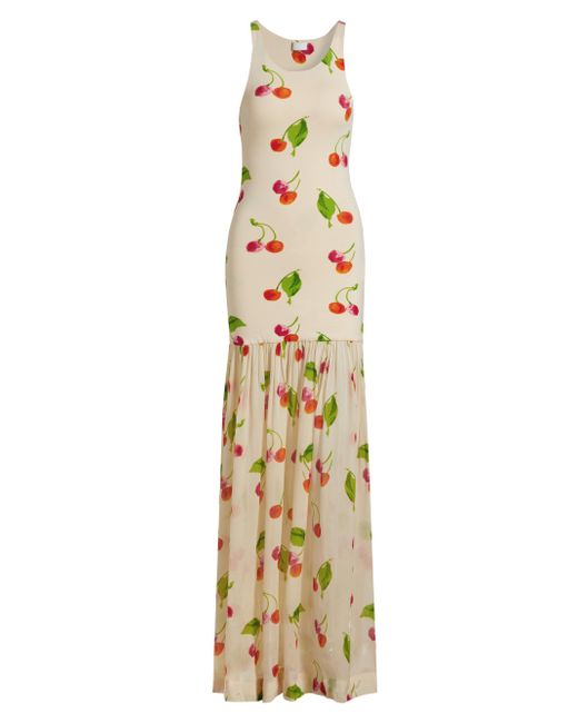 This sleevless maxi dress from SWF is crafted of viscose and detailed with a playful cherry print. Scoopneck Sleevless Pulls over 100% viscose Lining: 100% viscose Dry clean Imported SIZE & FIT About 59.4" from shoulder to hem Model measurements: 5'10" tall Model is wearing a US size Small. Contemporary Sportswear - Trend > Swf > Saks Fifth Avenue > Barneys. SWF. Color: Cherry Bomb. Size: XS.