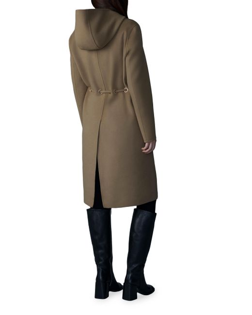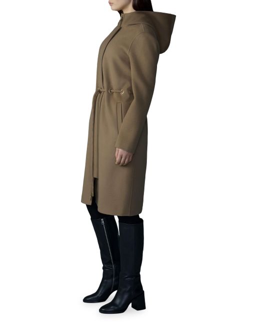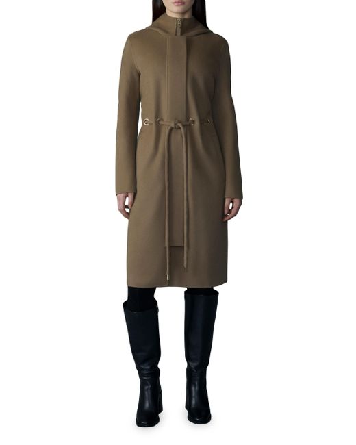 Mackage's Blithe coat is made of luxurious double-face wool. This straight-fit silhouette features a center front zipper closure hidden by a placket with snaps for a seamless look. The non-removable hood, welt pockets, and handmade details underscore its premium craftsmanship. Hood Long sleeves Side welt pockets Self-tie belt Front zip closure, snap-flap storm placket Temperature rating:-5 c/ 23 F 100% wool Dry clean Imported SIZE & FIT True to size About 41.25" from shoulder to hem Model measurements: 5'10" tall Model is wearing a US size Small ABOUT THE BRAND Founded in Montreal in 1999, Mackage began as a comprehensive outerwear brand offering everything from fine leather jackets to tailored wool coats and down parkas. The label evolved to develop superior construction and comfort, creating flattering and elegant silhouettes. Mackage is committed to quality and performance with an eye toward aesthetic innovation in its women's, men's and kids' designs. Outerwear And Swimwear - Down > Mackage > Saks Fifth Avenue > Barneys. Mackage. Color: Light Camel. Size: Small.