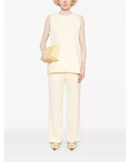 butter yellow concealed fly and button fastening belt loops two diagonal pockets to the sides two rear button-fastening pockets