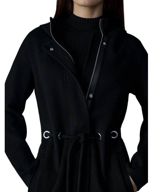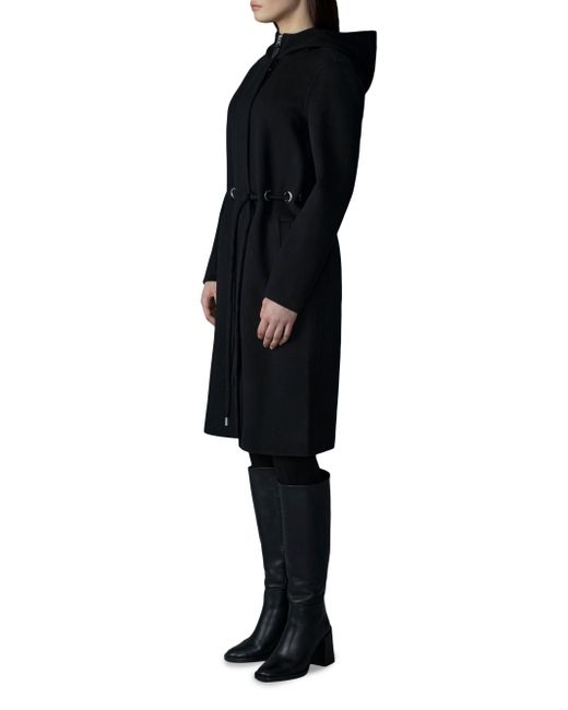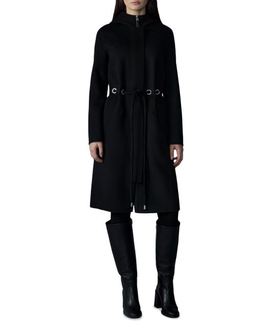 Mackage's Blithe coat is made of luxurious double-face wool. This straight-fit silhouette features a center front zipper closure hidden by a placket with snaps for a seamless look. The non-removable hood, welt pockets, and handmade details underscore its premium craftsmanship. Hood Long sleeves Side welt pockets Self-tie belt Front zip closure, snap-flap storm placket Temperature rating:-5 c/ 23 F 100% wool Dry clean Imported SIZE & FIT True to size About 41.25" from shoulder to hem Model measurements: 5'10" tall Model is wearing a US size Small ABOUT THE BRAND Founded in Montreal in 1999, Mackage began as a comprehensive outerwear brand offering everything from fine leather jackets to tailored wool coats and down parkas. The label evolved to develop superior construction and comfort, creating flattering and elegant silhouettes. Mackage is committed to quality and performance with an eye toward aesthetic innovation in its women's, men's and kids' designs. Outerwear And Swimwear - Down > Mackage > Saks Fifth Avenue > Barneys. Mackage. Color: Black. Size: XS.