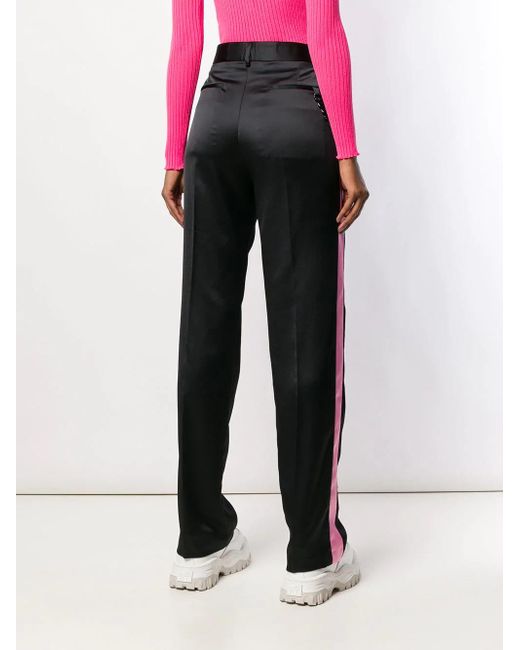 Infusing his uniquely Italian flavour of optimism, the MSGM AW18 collection is for the girl who goes out to be seen. A love letter to Milan, this vibrant offering from MSGM captures the dynamic energy of the capital city. These black and pink colour-block straight legs feature a high rise, a waistband with belt loops, a button and zip fly, side slit pockets, rear welt pockets, a straight leg, a regular length and a panelled colour block design with contrasting pink side panels.