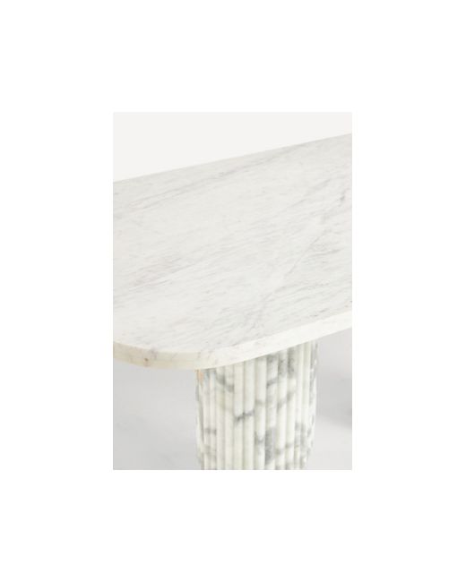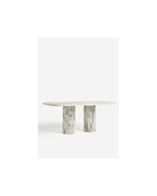 Marble pillars support an elongated table top that gives any kitchen or dining area a regal touch. Kanta Rectangle Dining Table by Anthropologie in Beige Size: 72 in