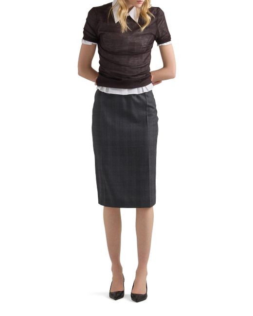 Pencil silhouette Side zipper closure with hook Fabric triangle logo 100% Fleece wool - 100% Trochus niloticus Imported. Lsd Rtw - Prada Rtw > Prada > Saks Fifth Avenue > Barneys. Prada. Color: Grey. Size: 0.