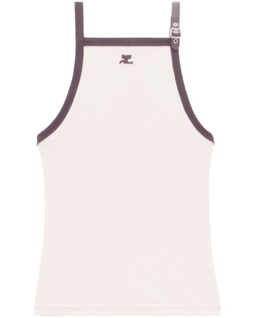 Highlightssand beige/blackcottonappliqué logobuckle-detail shoulder strapcontrasting trimsquare necksleevelessstraight hem