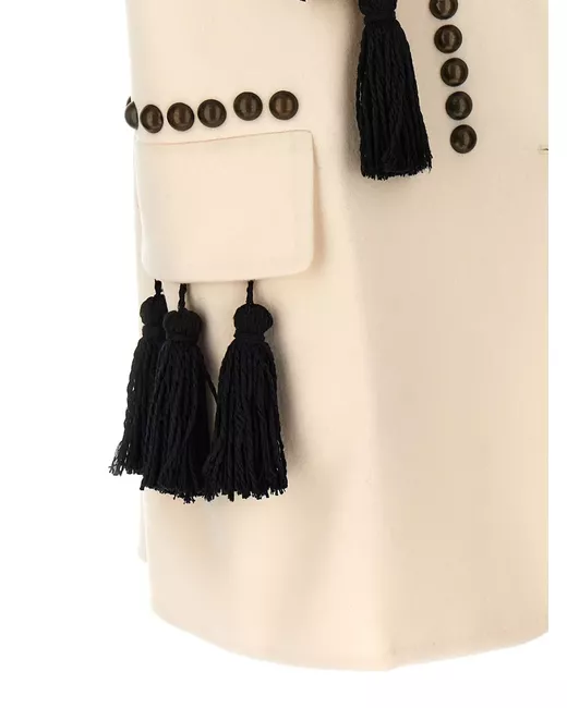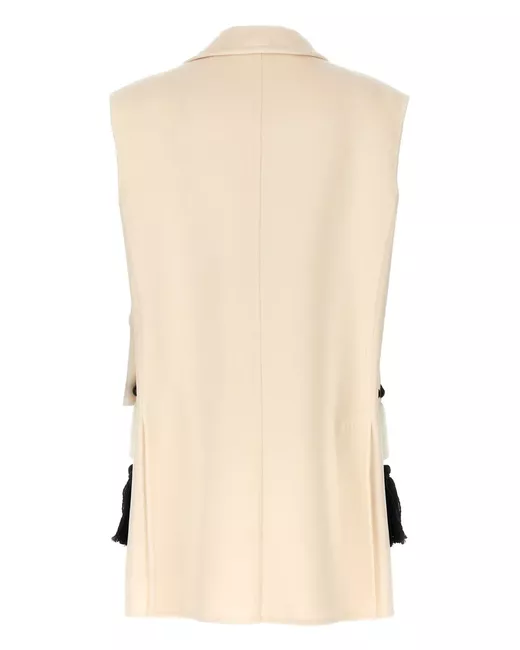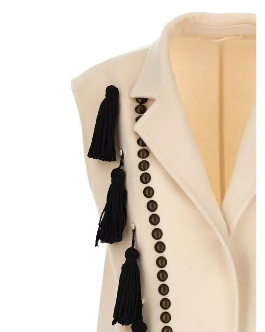 beige front button fastening tassel detail sleeveless