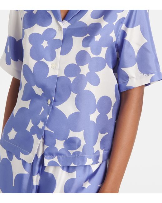 Material: 100% silk. Care instructions: dry clean. Made in Italy. Designer color name: Blue Lilac. Closure: button-down.