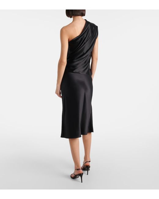 One-shoulder draped silk satin top