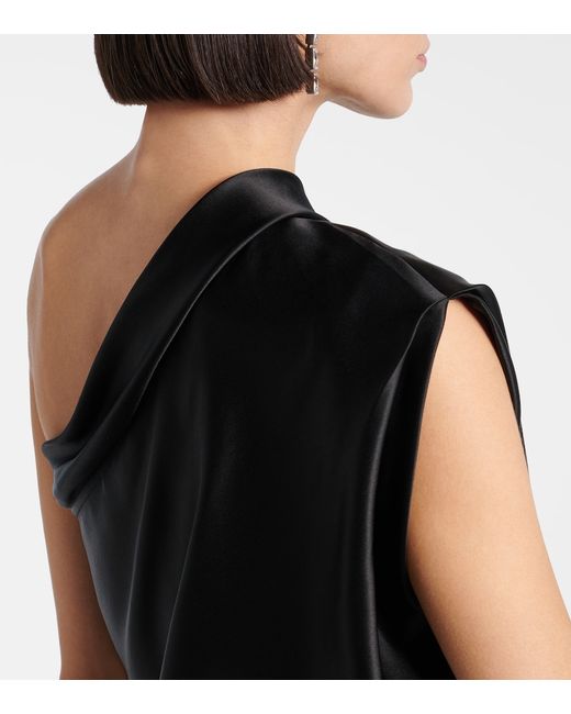 Asymmetric one-shoulder silk satin top