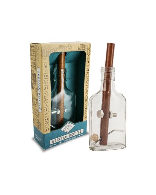 Grecian bottle is an ancient flask puzzle where the goal is to take everything out of the bottle, then return everything back inside with the metal pin and screw reconnected to the wooden dowel. Will you unveil the secret of Greece's true genius.