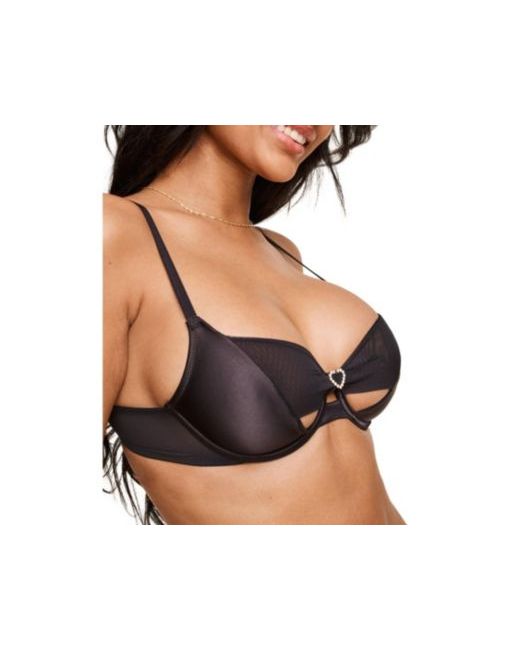 This bra is underwired, with satin half cups with ruched mesh and a rhinestone heart center front will give you the perfect amount of lift and support, while the adjustable back straps and hook and eye closure will ensure a perfect fit.