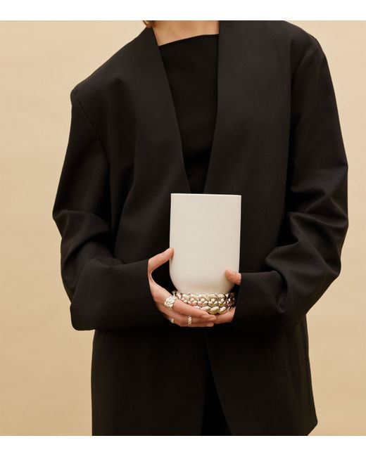 Christofle weaves a tapestry of alluring contrast on this porcelain vase, making it a perfect object with which to decorate your abode. An unglazed exterior parallels the lacquered interior, placing matte and shiny finishes in direct accordance, while a braided base - a signature of this collection - serves as a reference to classically intricate design practices.