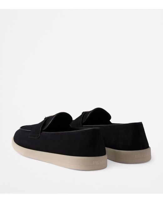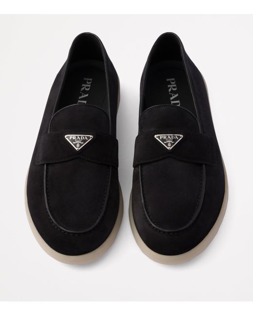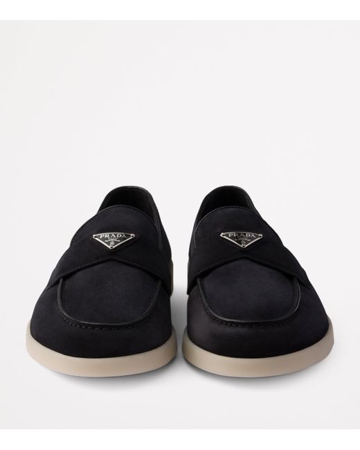 Prada proves its esteemed craftsmanship and minimalist leanings with these suede loafers, a design that gives the spotlight to the tactile finish. A streamlined silhouette is complete with a light rubber sole that promises timeless elegance, while the iconic Triangle logo plaque is placed atop the penny strap for a signature sign-off.