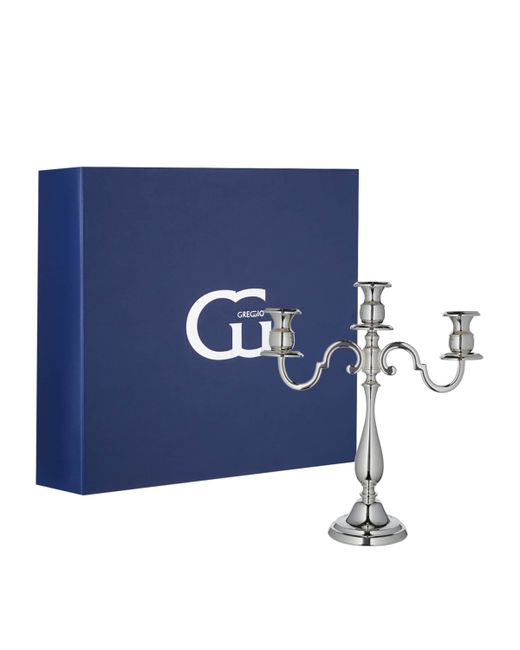 Renowned for designing exquisite silverware, this three-arm candelabra from Greggio's Inglese collection makes for a striking centrepiece. Finished in polished silver plating, the smooth curves are elegantly refined, complementing any home decor.