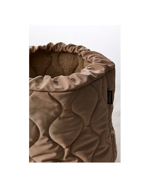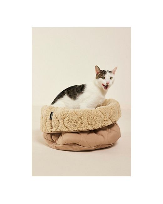 This forever timeless dog bed features a classic wavy quilt pattern and a reversible design for easy temperature regulation. • base of bed measures 17" x 17" and 7" tall • raised base is 2.5" thick (average thickness) • interior room measures 15" x 15" and 4" deep Taart Reversible Donut Bed by Lambwolf at Free People in Camel