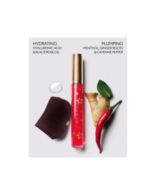Gucci Gloss a Levres is a tinted lip gloss that provides (instantly and over time) a plumping effect with a crystal shine finish. Wrapped up with deep hydration and long-lasting shine, lips look smoothed and fuller. Available in six sheer beautiful shades from clear to pink to brown, Gucci Gloss a Levres gives lips a subtle tint of pure color flattering all skin tones. Formulated with a potent potion of lip-care and plumping ingredients, Gucci Gloss a Levres makes your lips look volumized, smoothed and moisturized with a wash of color. The soft, bendable and precise doe-foot applicator features a wide, slanted area and pointed tip to ensure that the lip gloss envelops lips and glides on effortlessly.