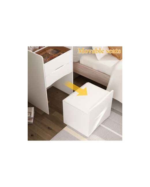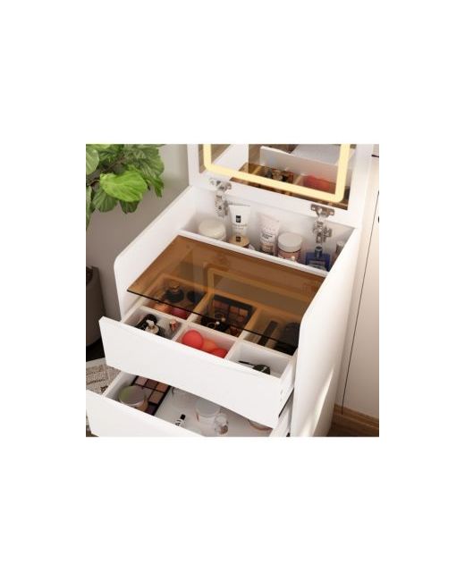 Dresser not only offers a stylish look and ample storage space, but it also provides several practical features. It includes variable lighting, a flip-top mirror, glass top, hidden stool and drawers to enhance your dressing experience. Whether you use it on a daily basis or for special occasions, this dresser will meet all your needs.