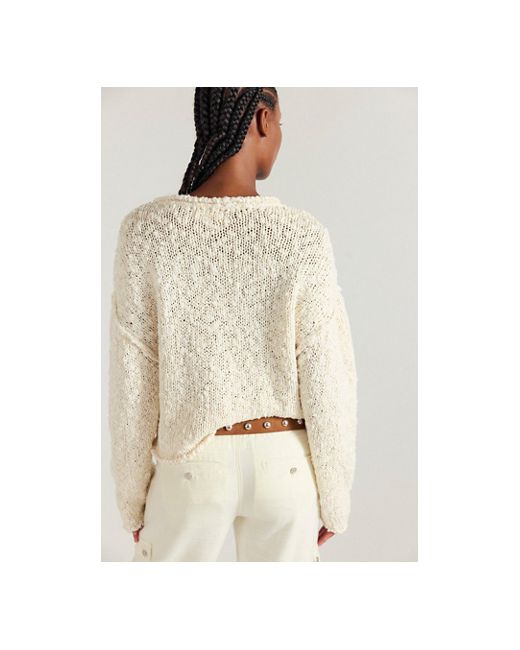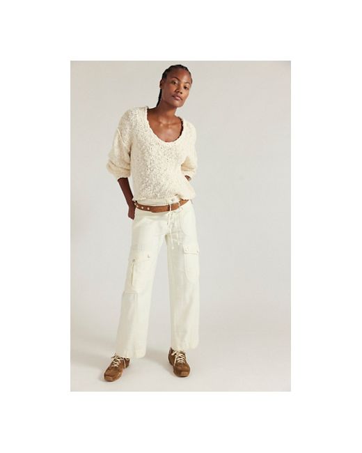 Forever cozy and unmistakably FP, this pullover is a true wear-everywhere staple. **Fit:** Relaxed slouchy fit **Features:** Wide neckline that can be worn off the shoulder, raw-edge seaming, dropped shoulders, chunky knit throughout **Why We ❤ It:** Easy with your favorite jeans or boldly layered with intimates, this style has endless ways to wear. Firefly Pullover at Free People in Ivory Tea Combo, Size: Medium