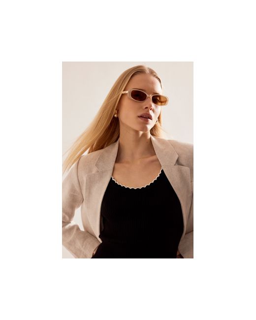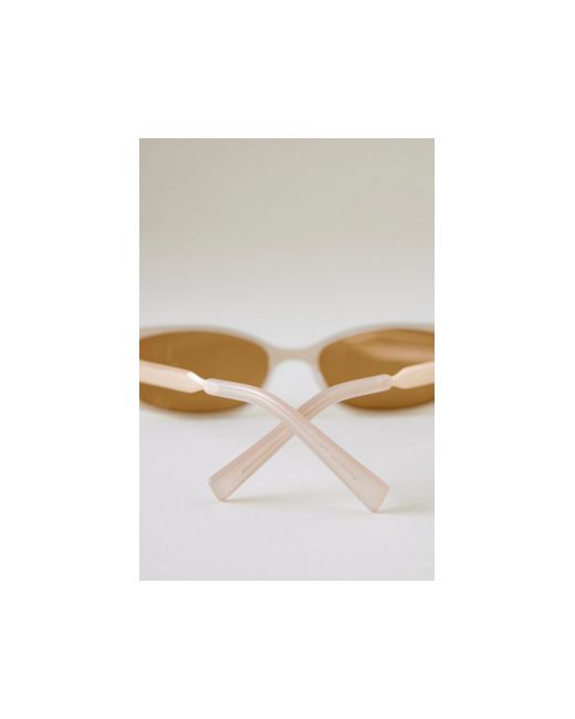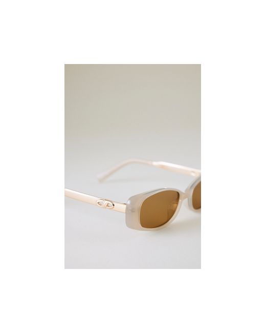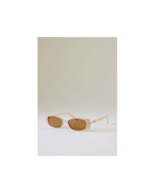 Designed with a bold metal temple with Le Specs' signature galaxy flagstripe decal, these stylish sunnies offer an oh-so-'90s rectangle silhouette, finished with light brown lenses. Lil Starlight Sunglasses by Le Specs in Beige, Women's, Polycarbonate at Anthropologie