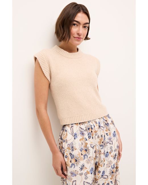 Another Marie Oliver closet essential, our new Belle shell is already a design team favorite. This lightweight cropped sweater features a contemporary shape with a strong shoulder, making it the perfect partner for skirts and pants in both bold prints and quietly chic solids.. -Slip on silhouette. -Soft rib knit. -Cropped fit. -4% cashmere / 46% bci cotton / 15% viscose / 33% polyamide / 2% elastane. -Unlined. -Care instructions: hand wash cold with mild detergent, do not bleach, lay flat to dry, cool iron or dry clean in mild process