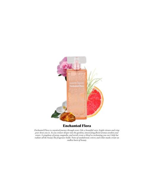 Enchanted flora is a mystical journey through scent, like a beautiful voice, bright citruses crisp pear draw you in, as you venture deeper into the gardens, intoxicating floral aromas awaken your senses, a blend so enchanting you can't help but radiate all the beauty this fragrance holds.