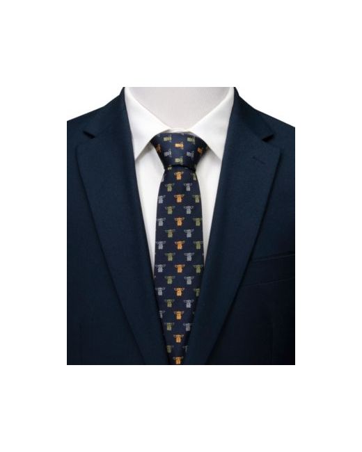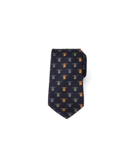 Show your support for the most adorable creature to ever bless a galaxy far away. This silk, navy tie features the child in gray, yellow, and sage green stitching in a play-on-dot pattern.