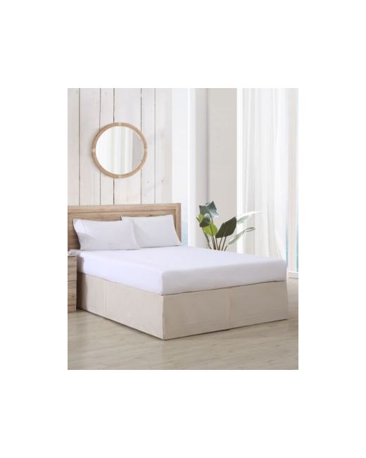 The Tommy Bahama Home solid pleated bed skirt features a solid medium beige ground on smooth cotton sateen. Crafted for long lasting use, the bed skirt drop features a 15" drop. Featuring split corners for a neat tailored look, this bed skirt is easy to care for and is machine washable.