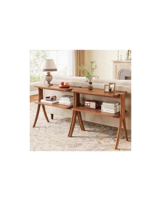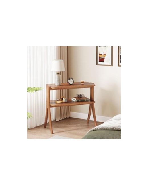 This 2-tier side table combines modern style with practicality. Featuring a walnut finish and herringbone wood legs, it offers extra storage while enhancing your space with sleek, sophisticated design.