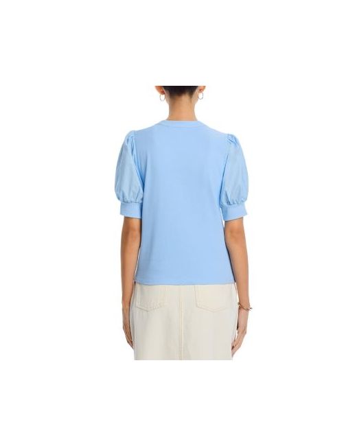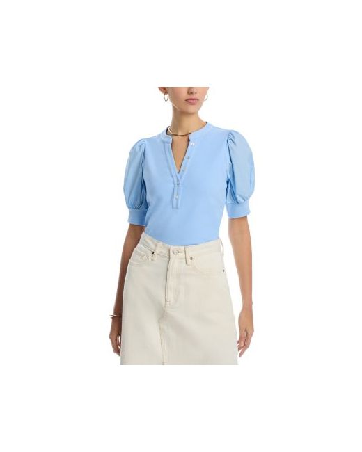 Single Thread Puff Sleeve Henley Top.Color:Cerulean.Size:XS.Material:95% cotton/5% spandex.Tops.