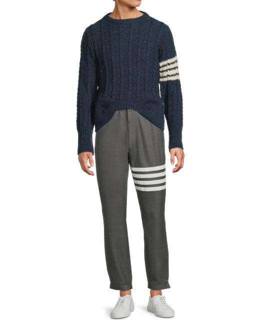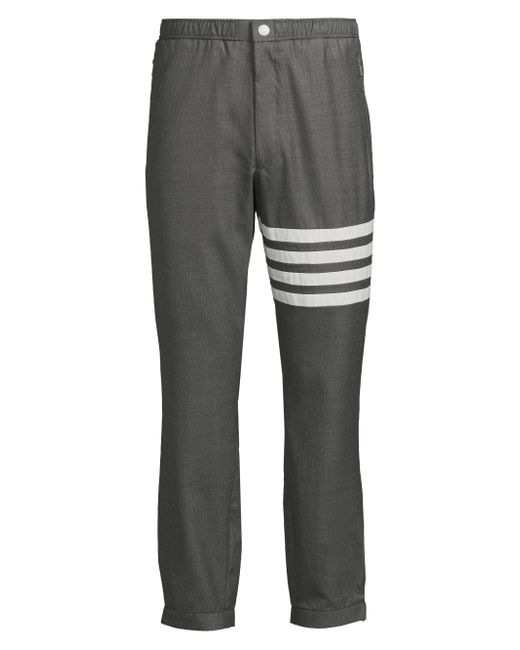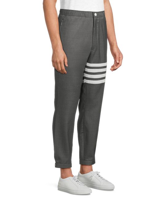 Thom Browne's track trousers showcase a stretch waistband and snap-front closure. Crafted of refined wool, this style features the brand's signature four-stripe detail at the leg. Elasticized waistband Side slash pockets Back welt pockets Front snap closure 100% wool Dry Clean Made in Japan SIZE & FIT Model measurements: 6'2" tall Model is wearing a US size 32. Men Advcd Dsgnr - Advanced Designer Collec > Thom Browne > Saks Fifth Avenue > Barneys. Thom Browne. Color: Medium Grey. Size: XS.
