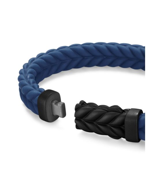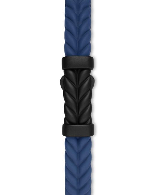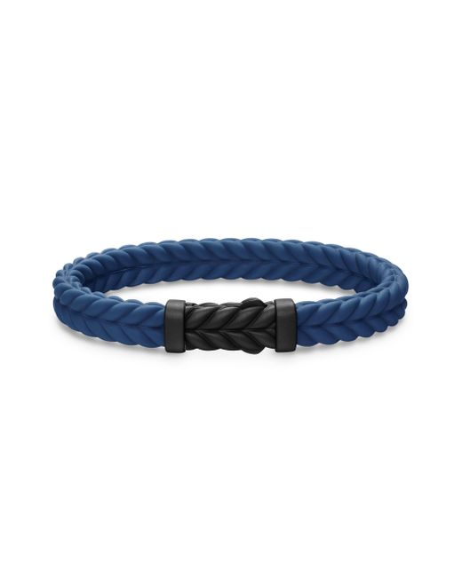 David Yurman skillfully reinterprets chevron - the ancient V-shaped pattern used in architecture and art - in this modern, sculptural collection. Viewed in relation to one another, each half of the motif is a mirror image of cable. Black titanium Blue rubber Bracelet, 9mm Chevron station, 28.3 x 11.5mm Hidden hook clasp Imported ABOUT THE BRAND David, a sculptor, and his wife, Sybil, a painter, launched their innovative jewelry brand in 1980 in New York City. Since then, the American design house has pioneered cutting-edge collections - from its iconic combination of sterling silver and diamonds to signature pinky rings. Today, with their son Evan, the Yurmans continue to deliver timeless pieces inspired by nature, art, ancient symbols and Manhattan's stunning architecture. Lsd Jewelry - David Yurman > David Yurman > Saks Fifth Avenue > Barneys. David Yurman. Color: Blue Black. Size: Small.