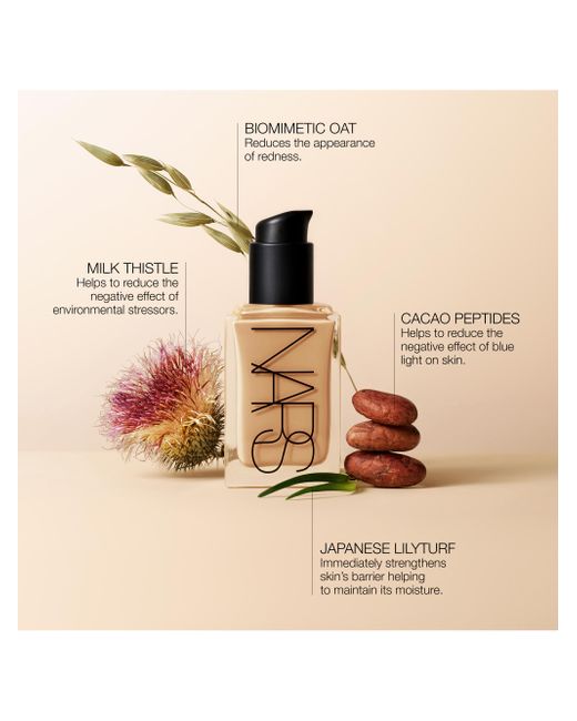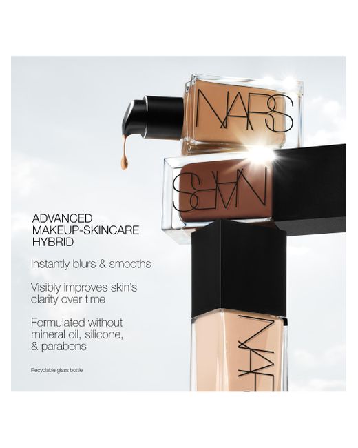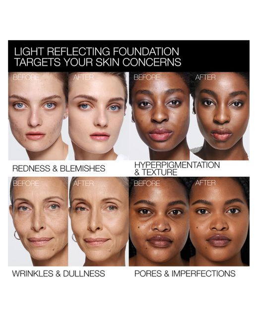 WHAT IT IS Advanced makeup-skincare hybrid foundation with a natural finish that instantly blurs and smooths, while visibly improving skin's clarity over time. 1 oz. Made in USA. WHAT IT DOES This innovative blend of makeup and skincare instantly blurs imperfections, smooths the look of textured skin, and helps conceal blemishes, dark spots, and redness. WHO IT'S FOR Suitable for most skin types, including sensitive skin. HOW TO USE IT 1. Dispense a pearl-sized amount of Light Reflecting Foundation and warm with fingertips.2. Apply foundation starting at the center of the face and blend out with fingertips. 3. Focus on one area at a time and blend well. This product comes in a recyclable glass bottle. When finished, remove the pump and recycle the glass bottle. INGREDIENTS WATER/AQUA/EAU C9-12 ALKANE BUTYLENE GLYCOL UNDECANE TRIDECANE ISODECYL NEOPENTANOATE HYDROGENATED POLYISOBUTENE POLYGLYCERYL-6 POLYRICINOLEATE POLYGLYCERYL-2 DIISOSTEARATE DISTEARDIMONIUM HECTORITE DIISOSTEARYL MALATE GLYCERIN SYNTHETIC WAX SODIUM CHLORIDE OPHIOPOGON JAPONICUS ROOT EXTRACT ASCOPHYLLUM NODOSUM EXTRACT THEOBROMA CACAO (COCOA) SEED EXTRACT CURCUMA LONGA (TURMERIC) ROOT EXTRACT SILYBUM MARIANUM FRUIT EXTRACT ALUMINUM HYDROXIDE MAGNESIUM CHLORIDE SODIUM DILAURAMIDOGLUTAMIDE LYSINE TOCOPHEROL COCO-CAPRYLATE/CAPRATE ETHYLHEXYLGLYCERIN PENTYLENE GLYCOL HYDROXYPHENYL PROPAMIDOBENZOIC ACID ASCORBYL PALMITATE CITRIC ACID SEA WATER/MARIS AQUA/EAU DE MER TRISODIUM EDTA BARIUM SULFATE ALUMINA CHLORPHENESIN PHENOXYETHANOL POTASSIUM SORBATE [+/-(MAY CONTAIN/PEUT CONTENIR): IRON OXIDES (CI 77491, CI 77492, CI 77499) MICA TITANIUM DIOXIDE (CI 77891)]. Cosmetics - Nars > Nars > Saks Fifth Avenue > Barneys. NARS. Color: Siberia.
