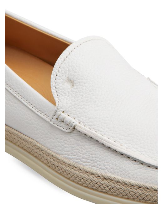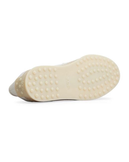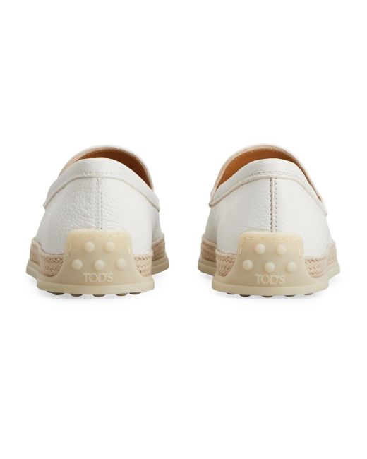 These slipper-style loafers from Tod's are crafted of leather and styled with a rubber outsole detailed with embossed rubber pebbles and raffia weaving. Round toe Slips on Leather upper Leather lining Rubber sole Made in Italy. Women's Shoes - Tods Womens Shoes > Tod's > Saks Fifth Avenue > Barneys. Tod's. Color: Bianco Calce. Size: 5.