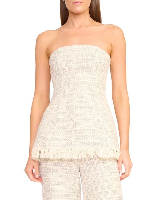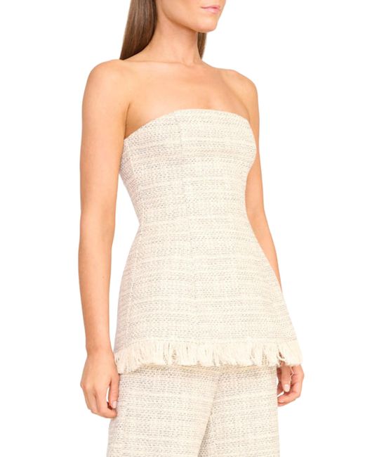 Crafted of textured cotton tweed, the Silvia top from Staud features a strapless silhouette with a tailored waist. Frayed fringe at the lower hem completes the design. Strapless Back zipper closure 100% cotton Dry clean Imported SIZE & FIT Model measurements: 5'10" tall Model is wearing a US size 4. Contemporary Sportswear - Contemporary Collections > Staud > Saks Fifth Avenue > Barneys. Staud. Color: Ivory Multi. Size: 00.